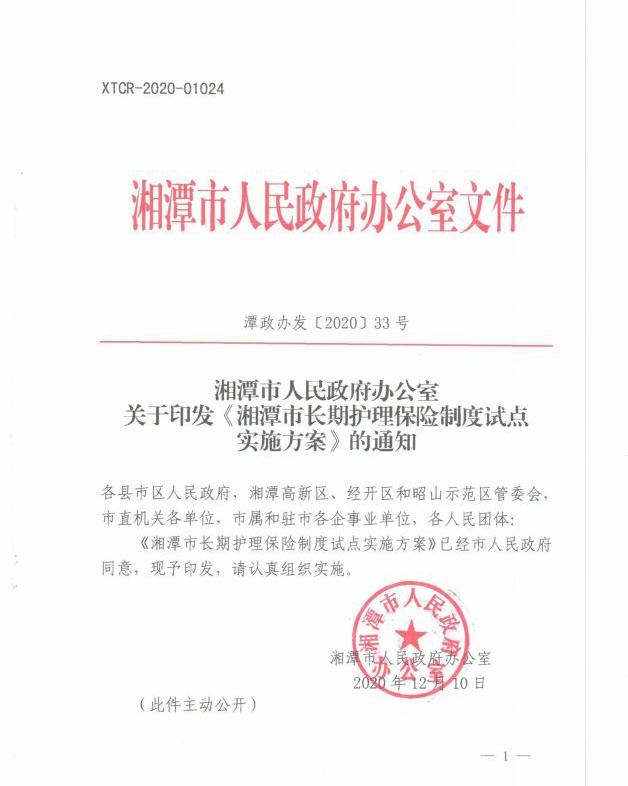 潭政辦發(fā)〔2020〕33號湘潭市人民政府辦公室關(guān)于印發(fā)《湘潭市長(cháng)期護理保險制度試點(diǎn)實(shí)施方案》的通知